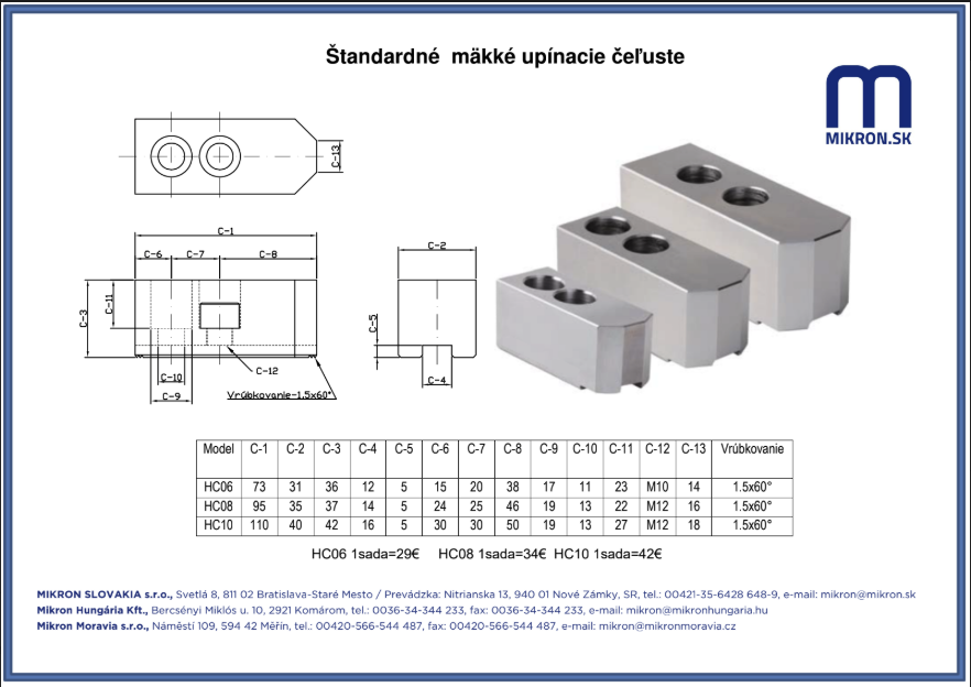 Vysokokvalitné mäkké upínacie čeľuste pre precízne a bezpečné upínanie. Dostupné v modeloch HC06, HC08 a HC10, ideálne pre rôzne priemyselné aplikácie. Cena je uvedená za sadu. Balenie obsahuje 3 kusy.